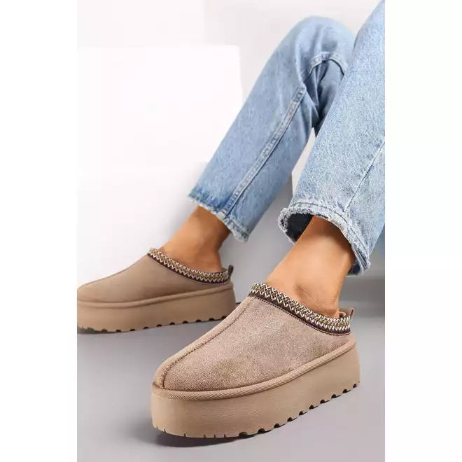 CAMEL EMBROIDED FLUFFY PLATFORM SLIP ON