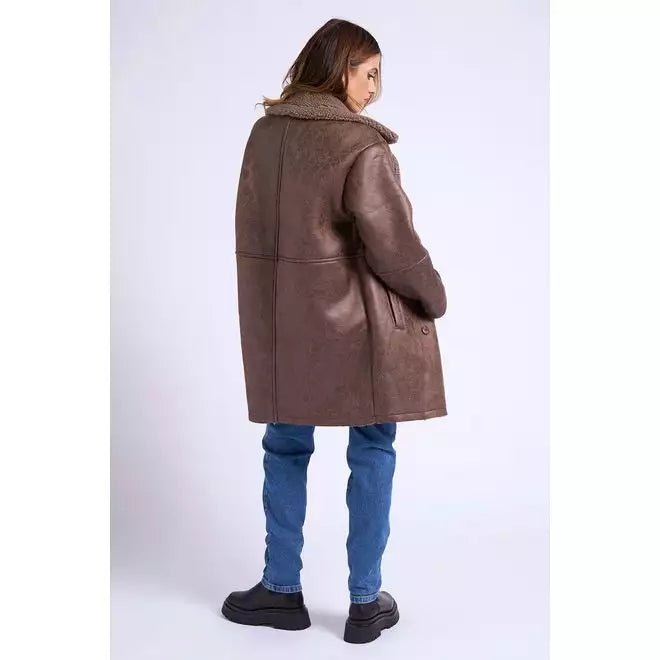 Borg lined Chocolate Mid Length Bonded Coat