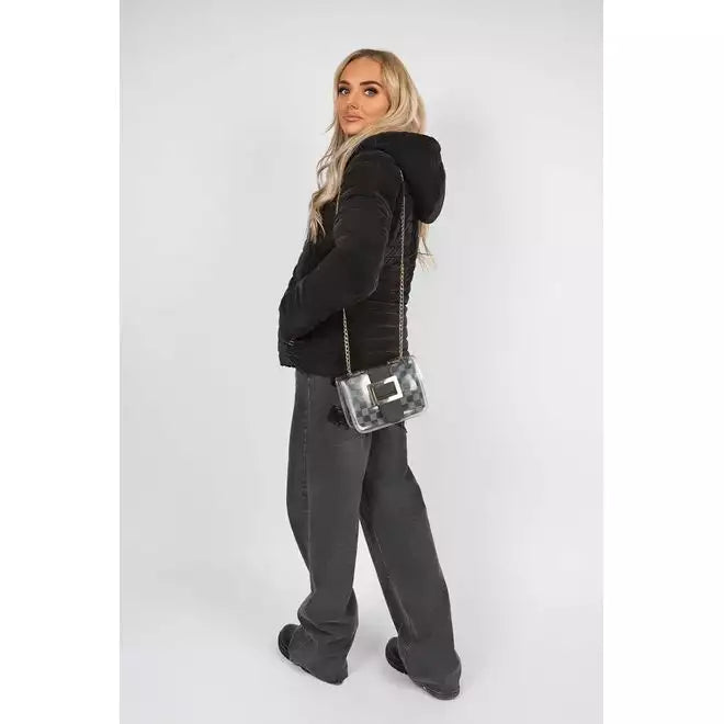 This padded hooded jacket is a must-have for colder days! It features gold zip detailing, side pockets and a flattering shape that’s perfect for layering over jeans or joggers. Super cosy and easy to wear every day.