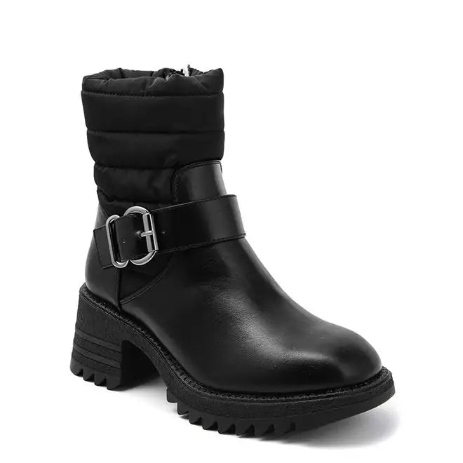 Mid- Heel Buckle Zip Chunky Detail Boots