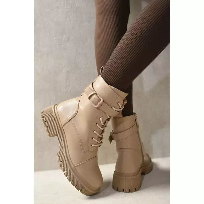 Step up your style game with these Lace Up Buckle Chunky Combat Boots. These boots are all about that cool, edgy vibe with their lace-up front and buckle detailing. Super comfy and versatile, they’re perfect for everything from a casual day out to a night on the town. Get ready to rock any outfit with confidence!
